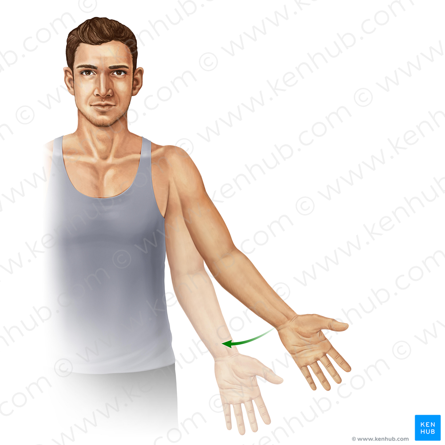 Shown from anterior perspective. Also known as Adduction of shoulder.