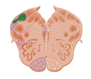 Shown from axial perspective. Also known as Nucleus of Burdach.