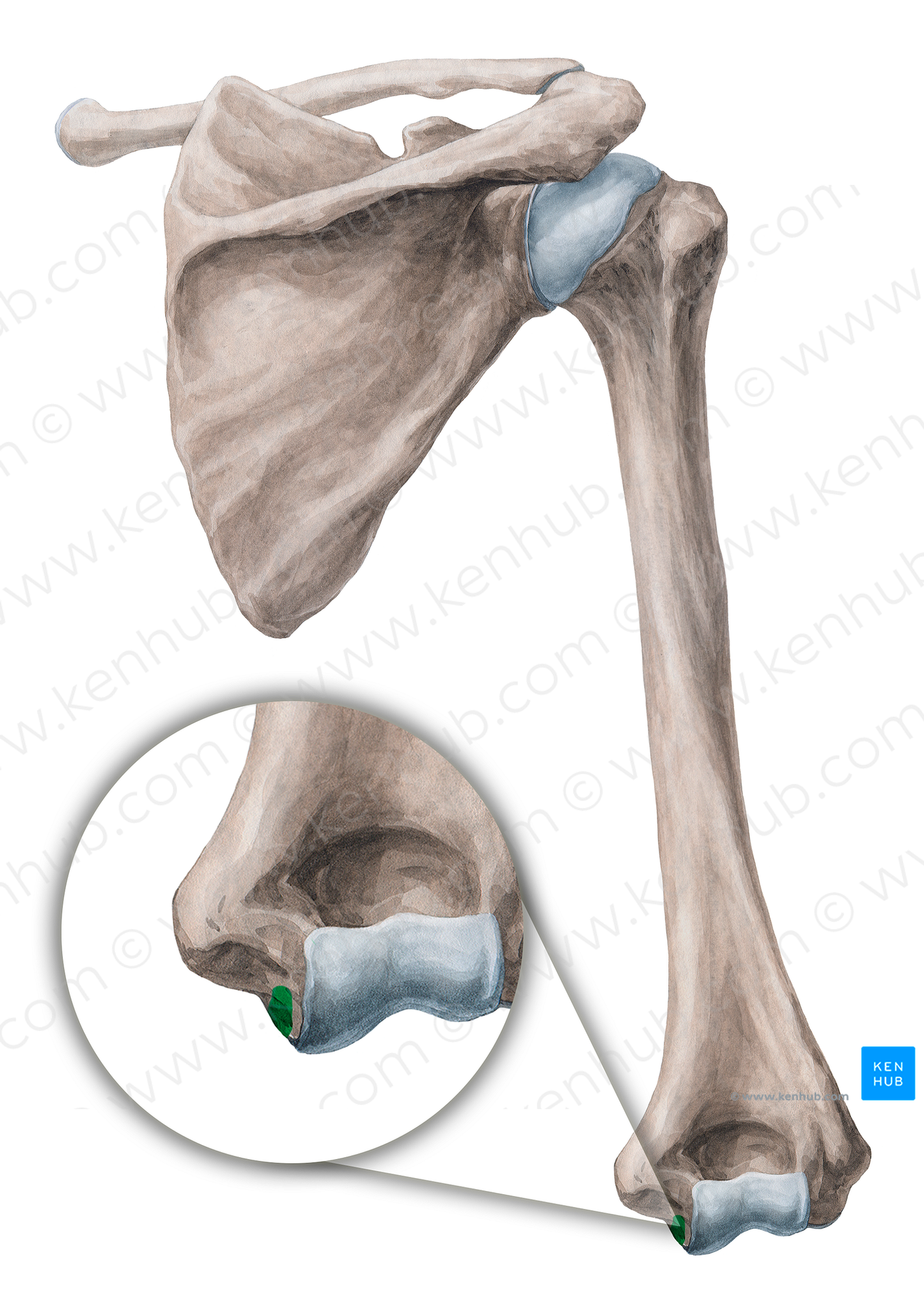 Shown from posterior perspective. Also known as Ulnar groove of humerus.