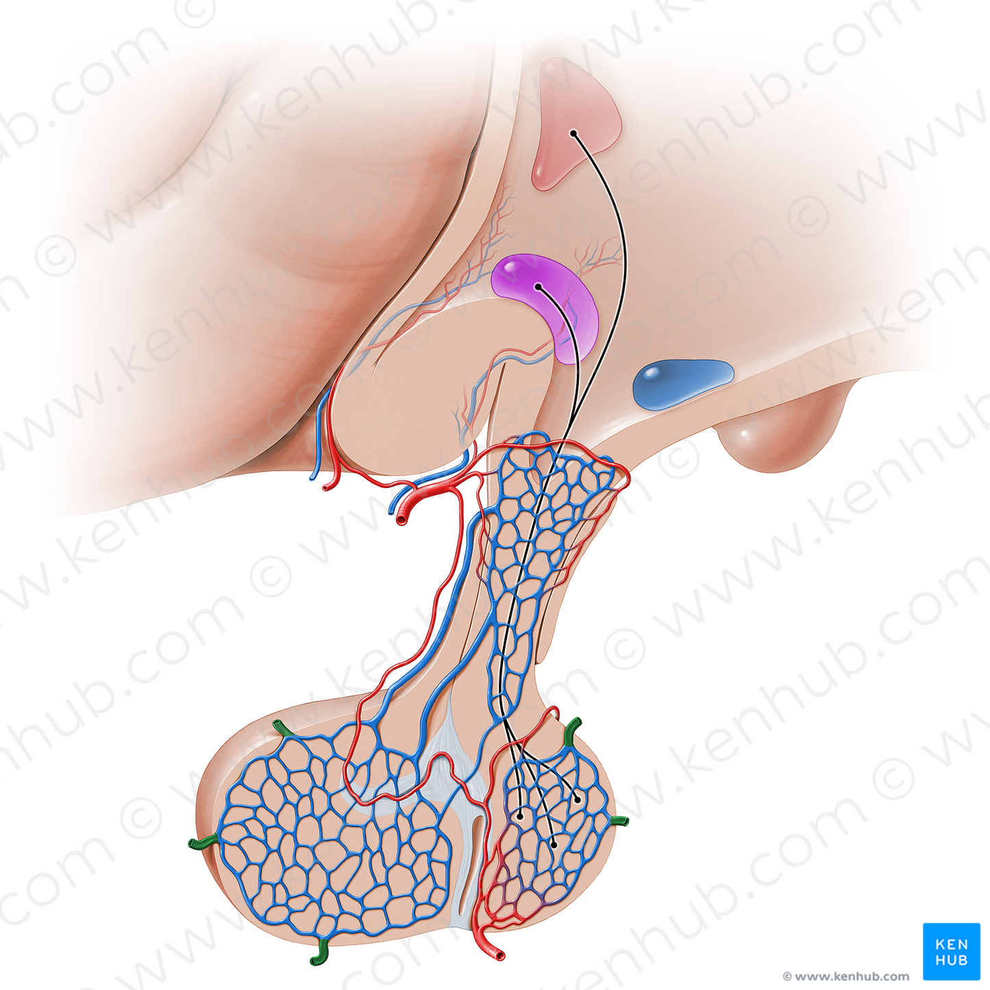 Shown from medial perspective. Also known as Hypophysial veins.