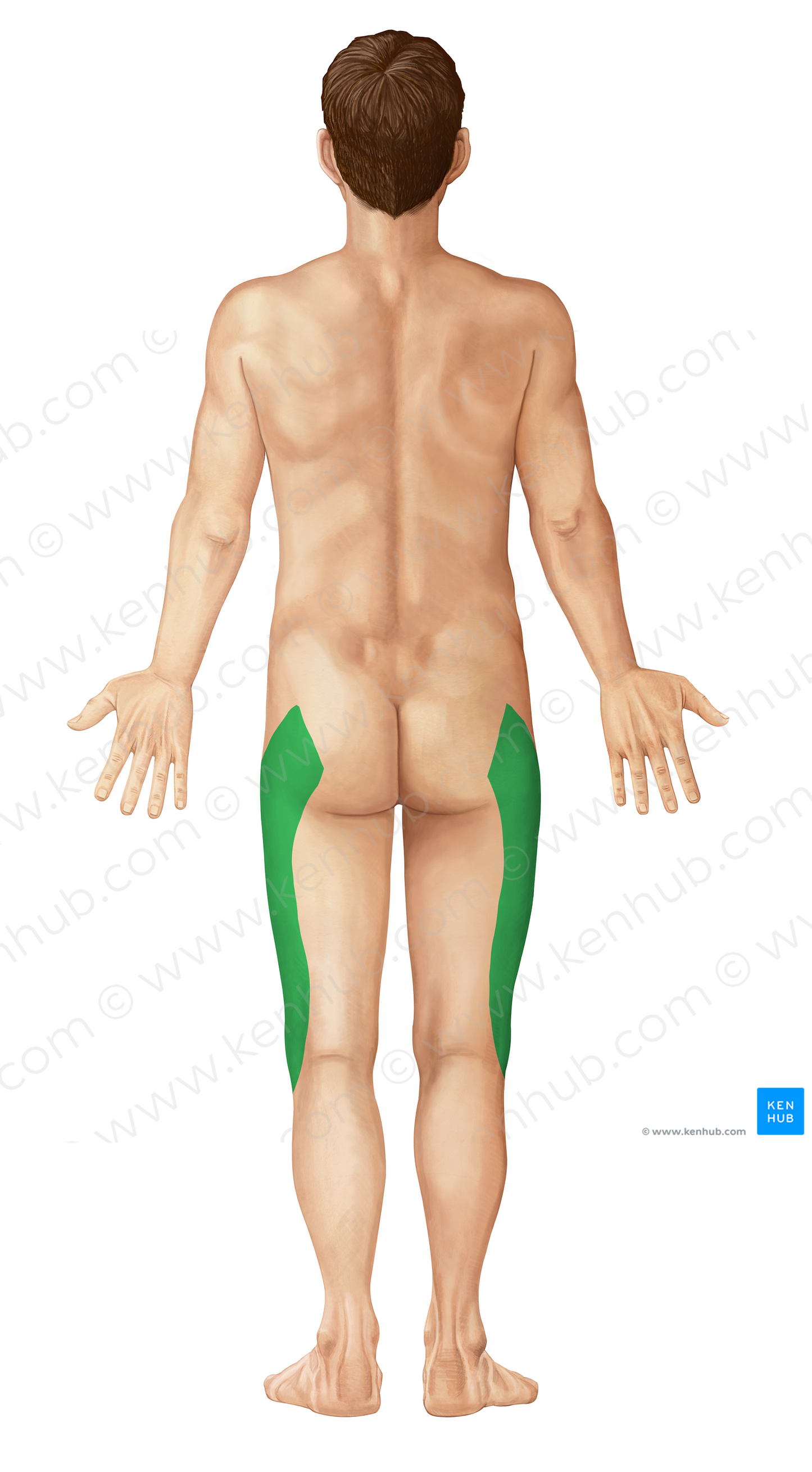 Shown from posterior perspective. Also known as Iliotibial band, and Bandelette of Maissiat.