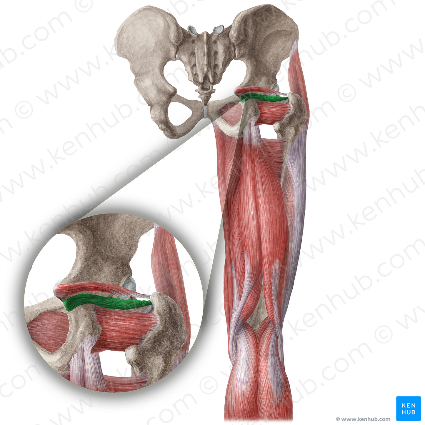 Shown from posterior perspective. Also known as Gemellus inferior muscle.