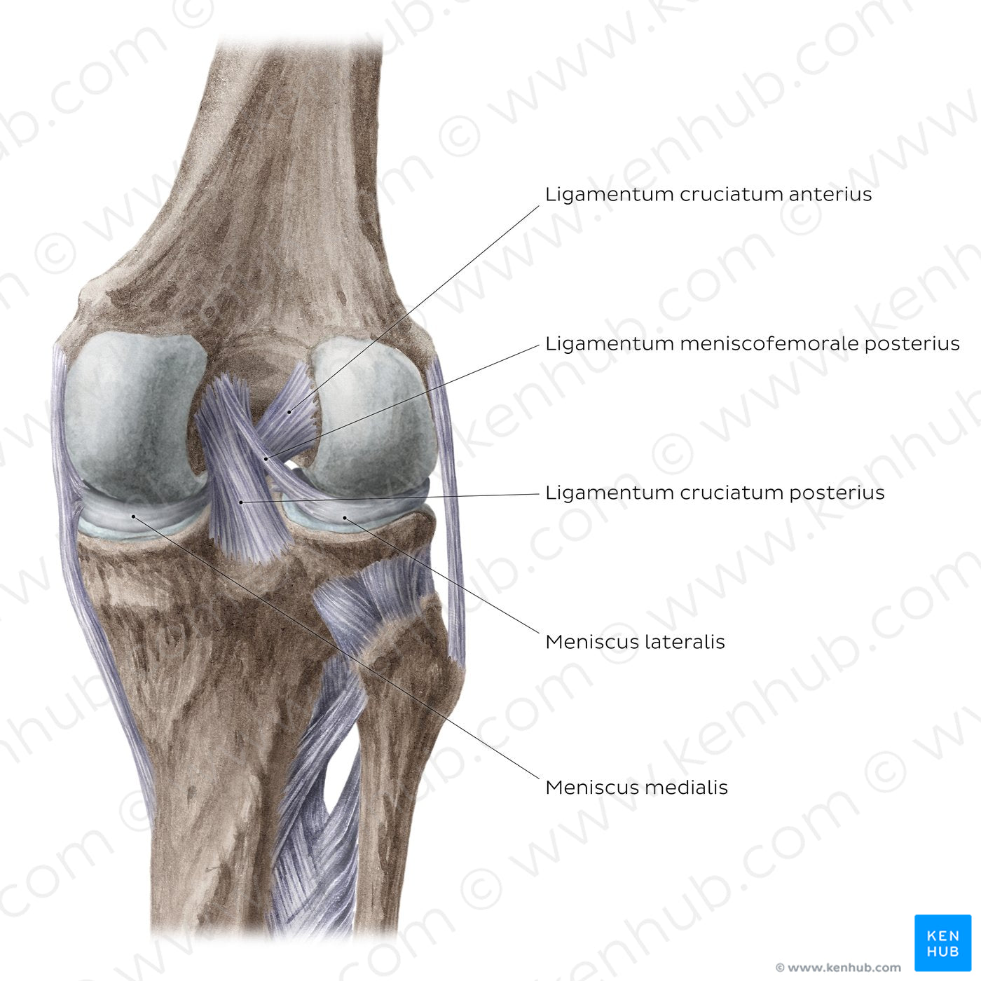 Knee joint: Intracapsular ligaments and menisci (posterior view) (Latin)