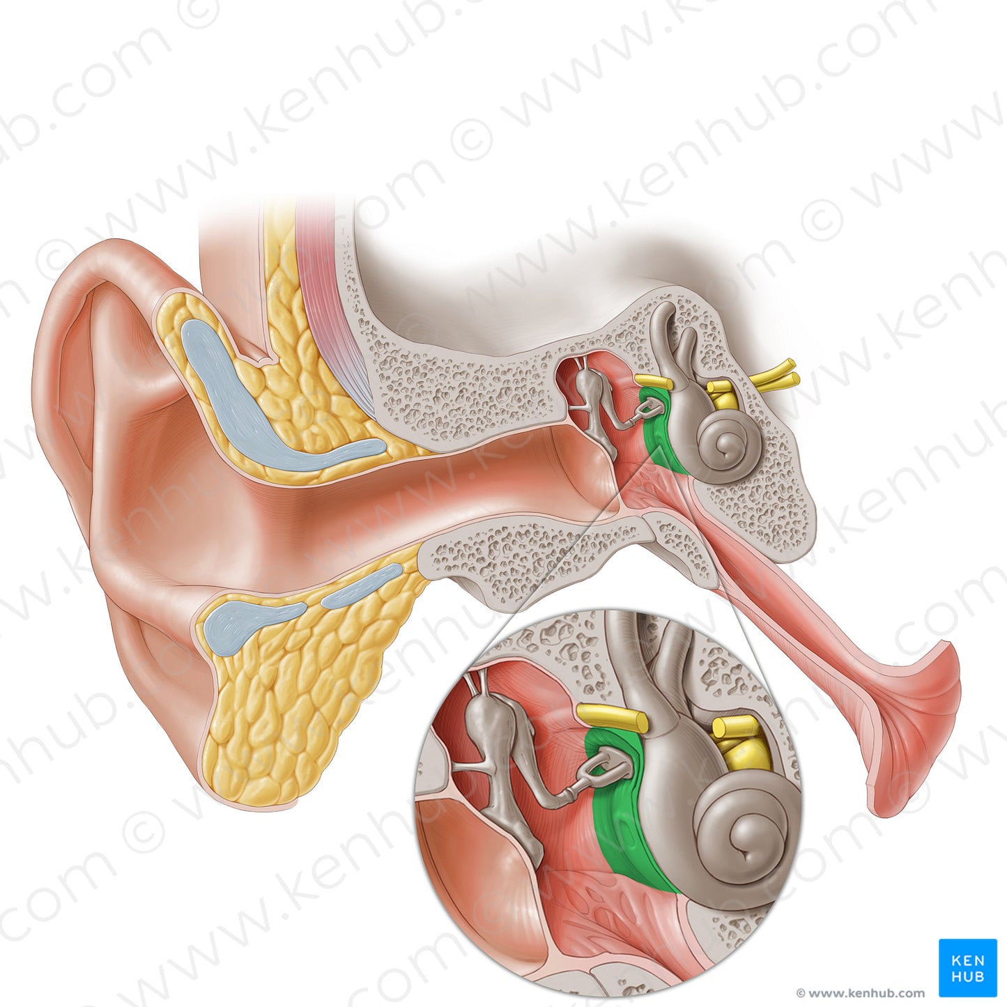 Shown from coronal perspective. Also known as Medial wall of tympanic cavity.