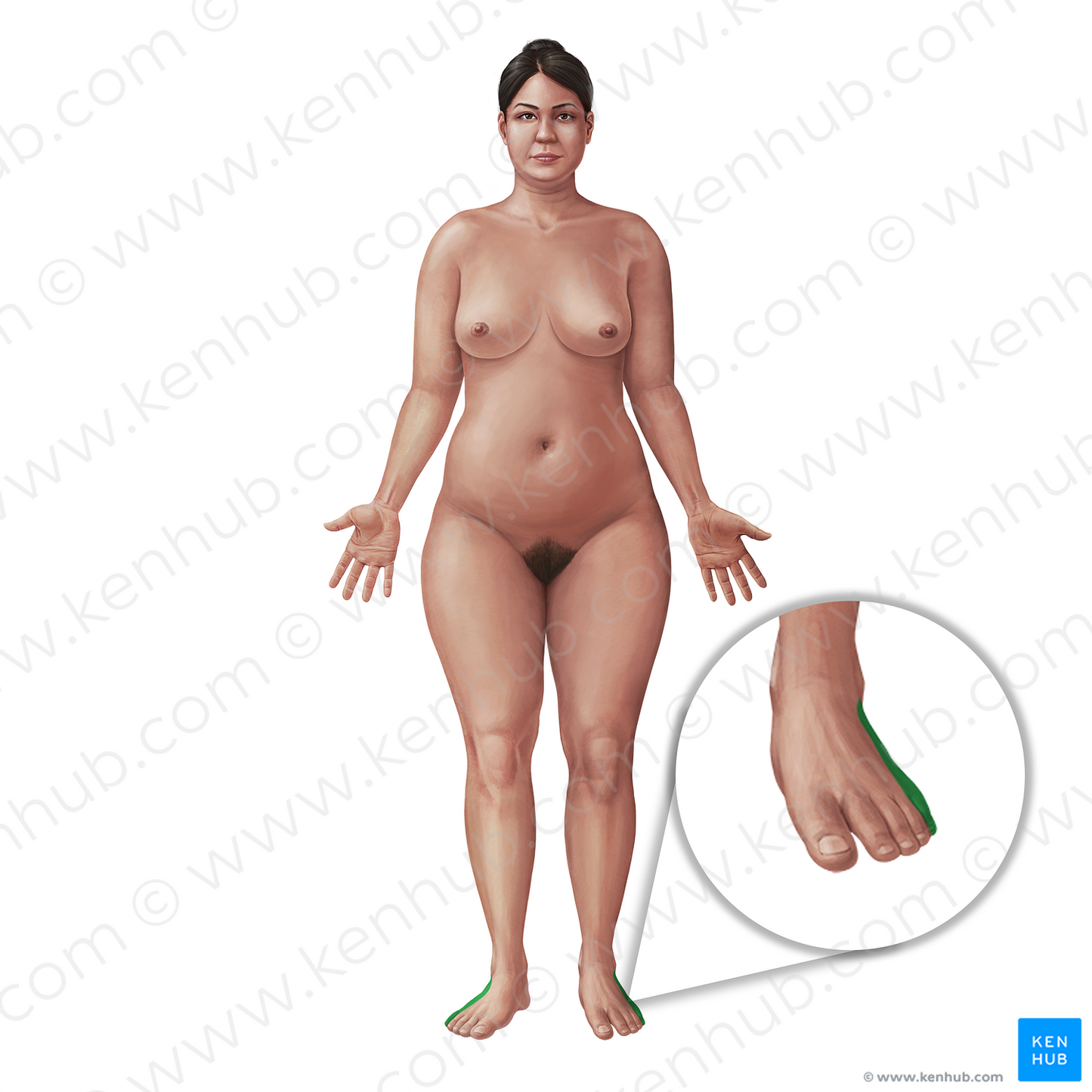 Shown from anterior perspective. Also known as Fibular border of foot, and Peroneal border of foot.