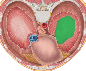 Shown from superior perspective. Also known as Left leaf of central tendon of diaphragm.