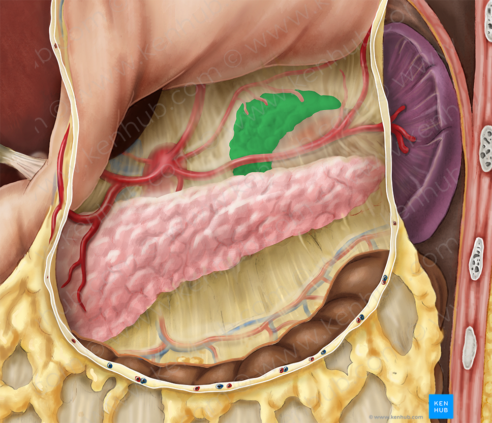 Shown from anterior perspective. Also known as Left adrenal gland.