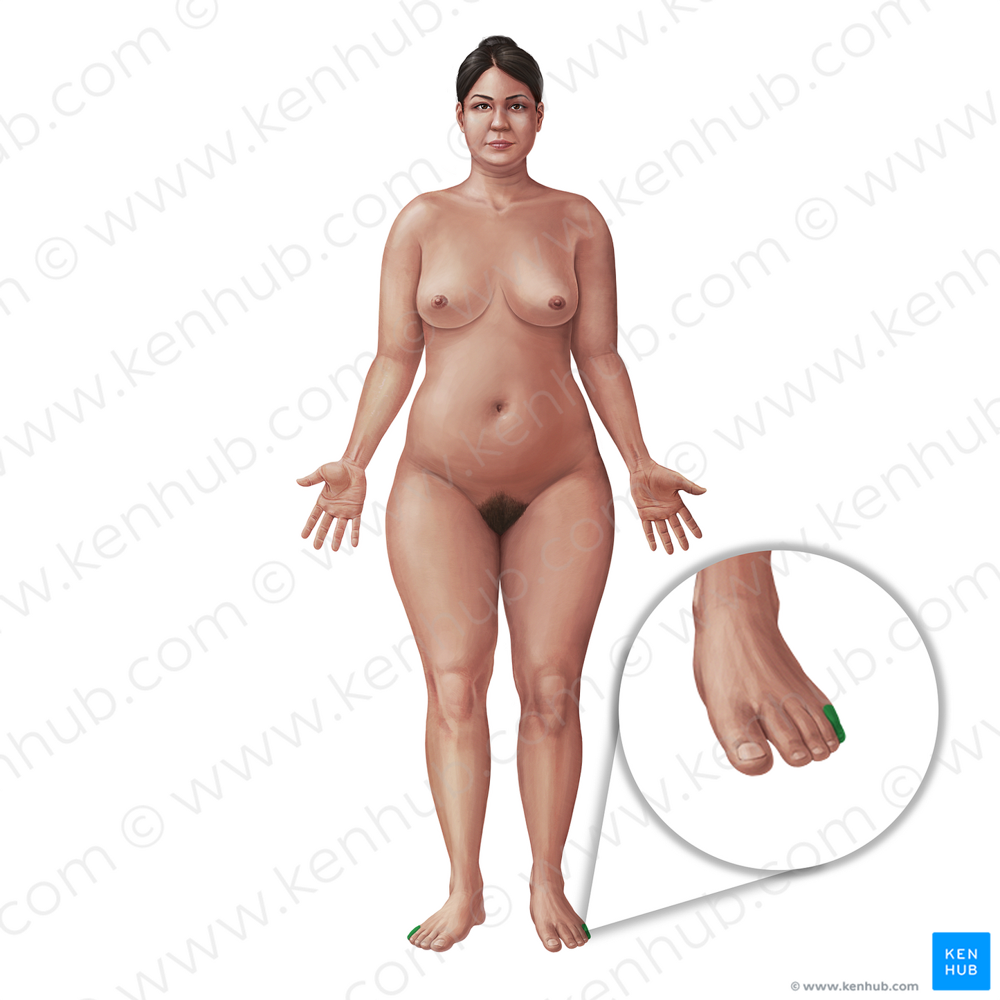 Shown from anterior perspective. Also known as 5th digit of foot, and 5th toe.
