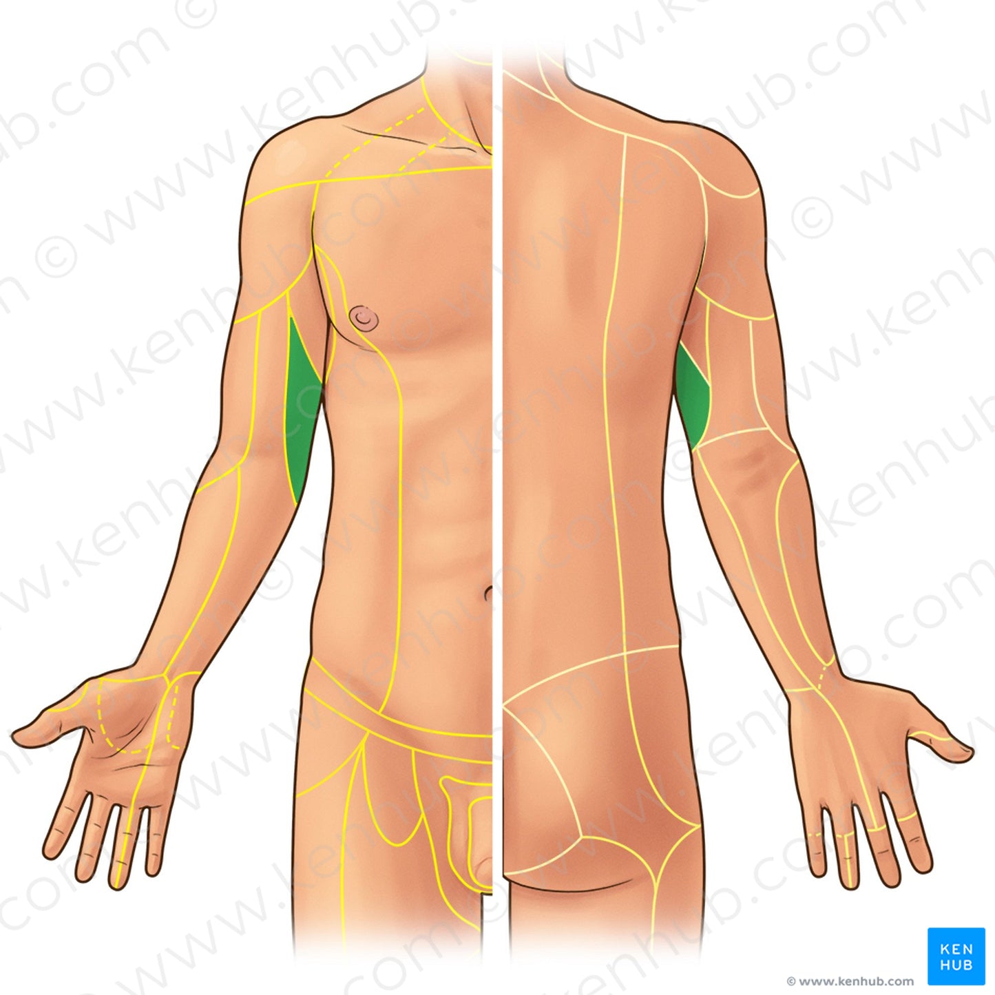 Shown from anterior perspective. Also known as Medial cutaneous nerve of arm, and Nerve of Wrisberg.