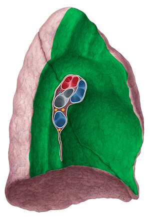 Shown from medial perspective. Also known as Mediastinal part of medial surface of lung, and Inner surface of lung.