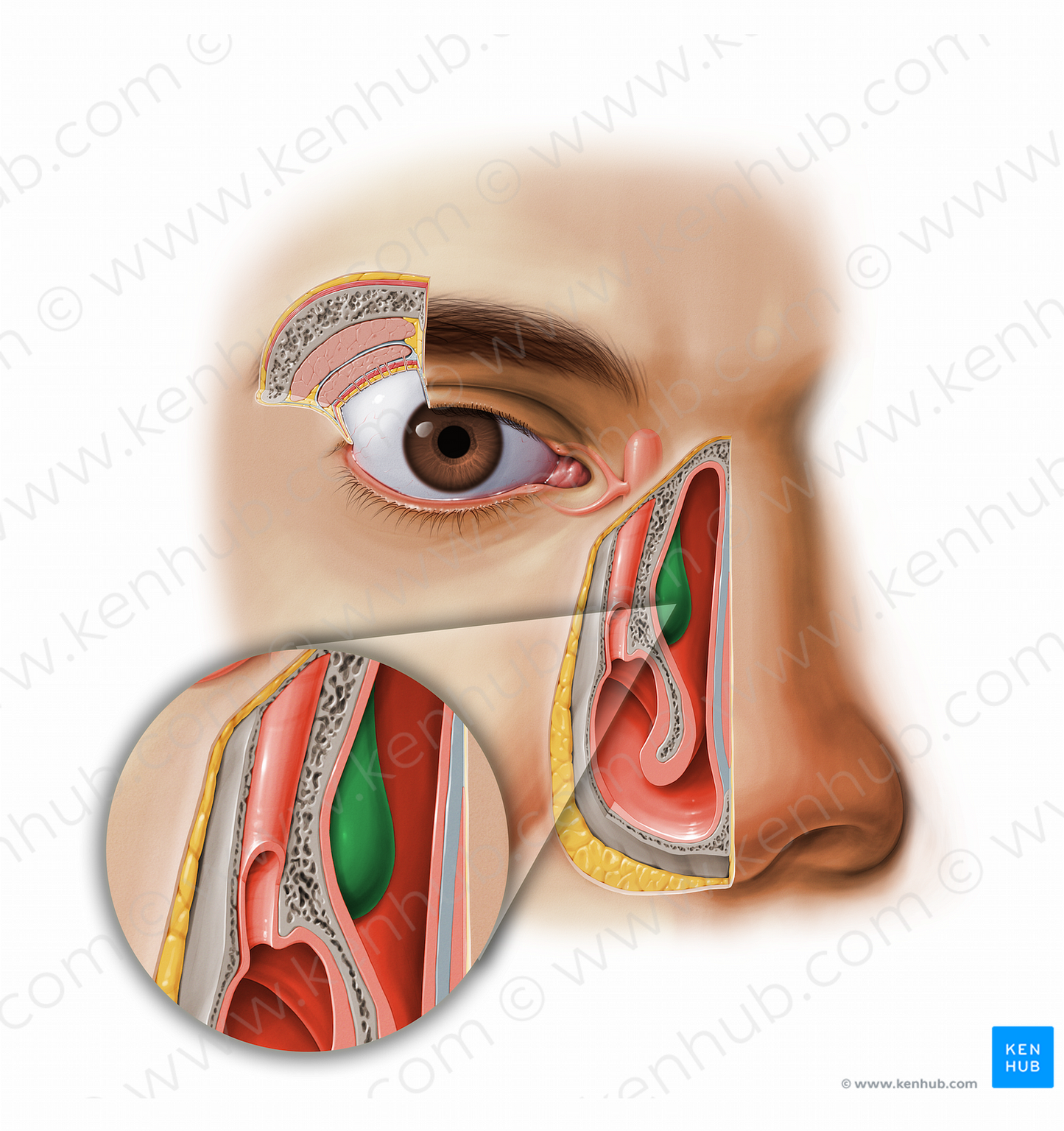 Shown from anterior perspective. Also known as Middle nasal turbinate.