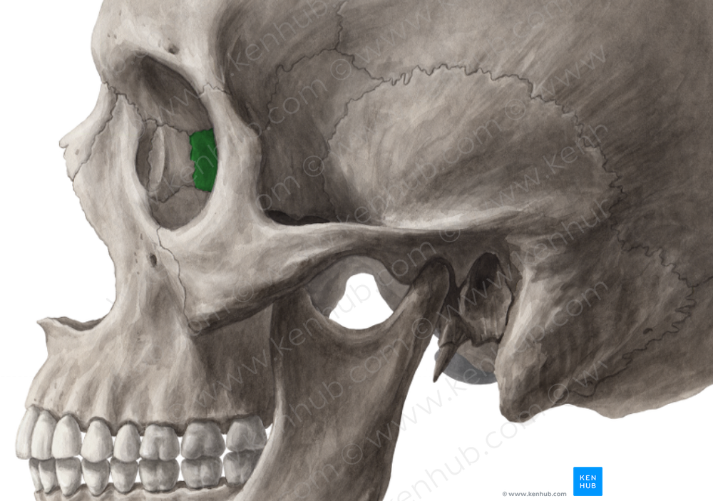 Shown from lateral left perspective. Also known as Orbital plate of ethmoidal labyrinth, Orbital surface of ethmoid bone, and Lamina papyracea of ethmoid bone.