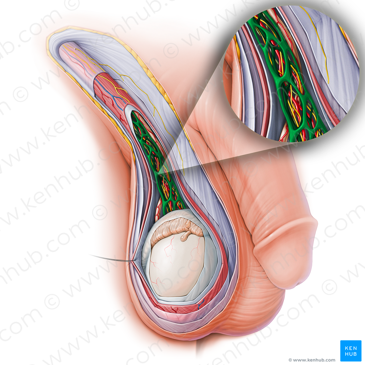 Shown from lateral right perspective. Also known as Pampiniform venous plexus.