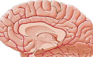 Shown from sagittal perspective. Also known as Paracentral artery.