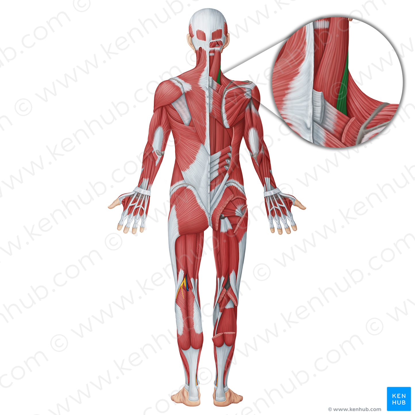 Shown from posterior perspective. Also known as Splenius colli muscle.