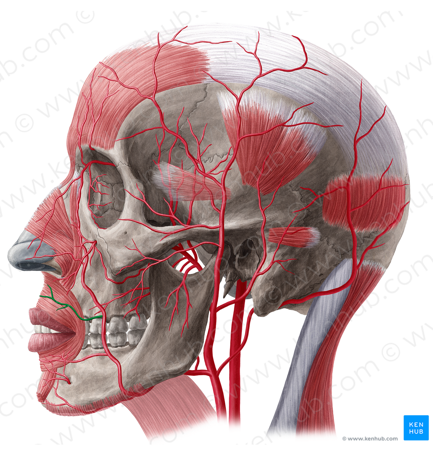 Shown from lateral left perspective. Also known as Superior labial branch of facial artery, and Maxillary labial artery.