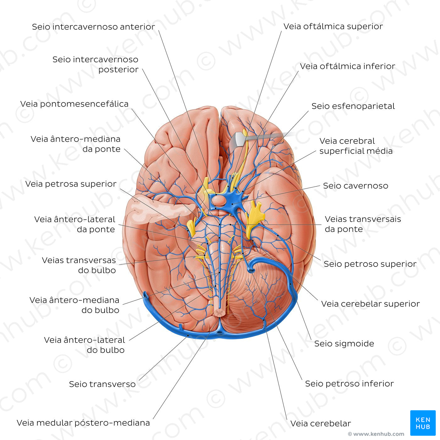 Veins of the brainstem and cerebellum - Basal view (Portuguese)