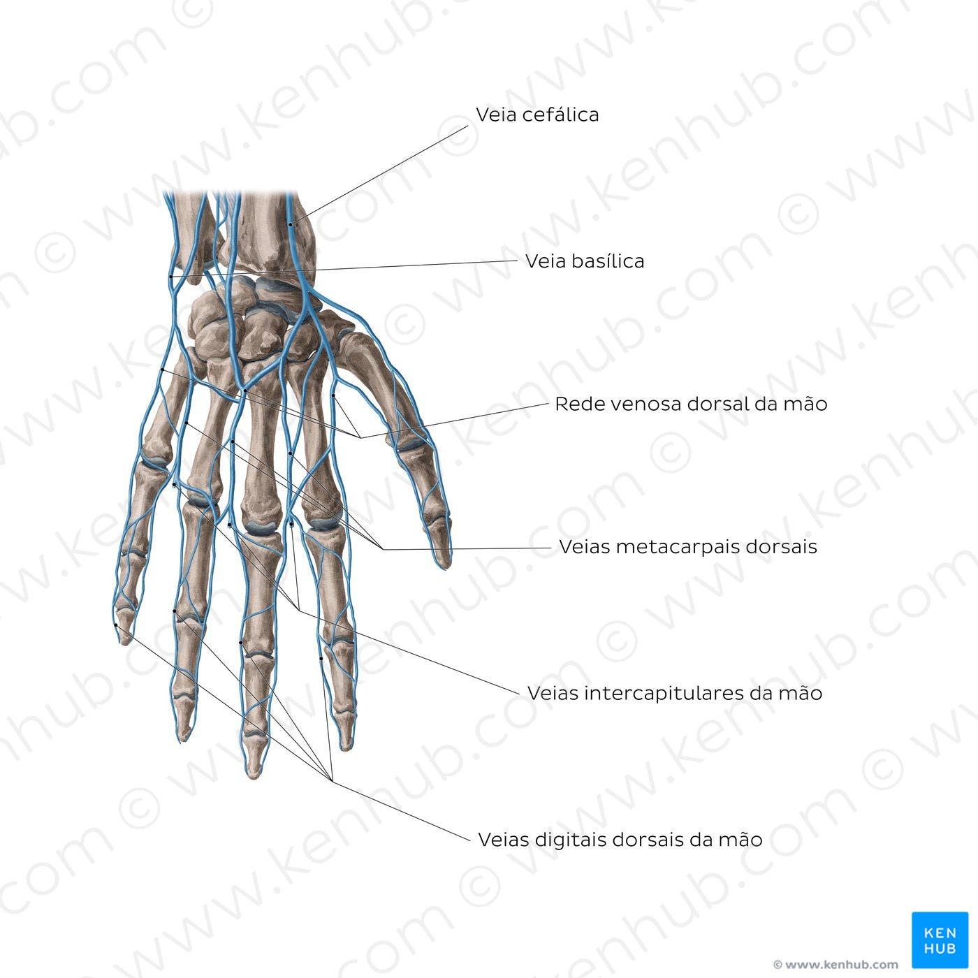 Veins of the hand: Dorsal view (Portuguese)
