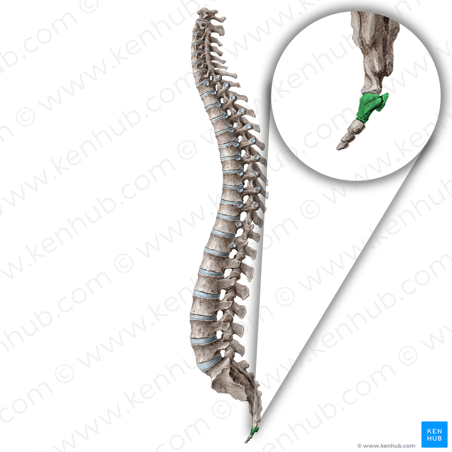 Shown from lateral left perspective. Also known as 1st coccygeal vertebra.