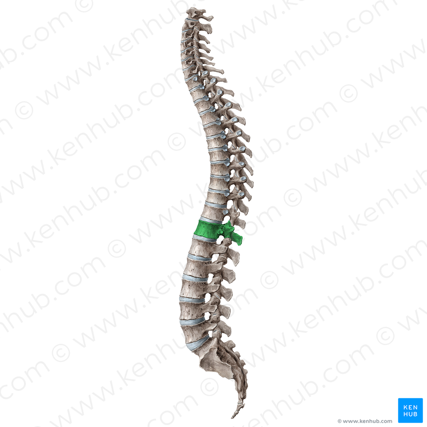 Shown from lateral left perspective. Also known as 12th thoracic vertebra.