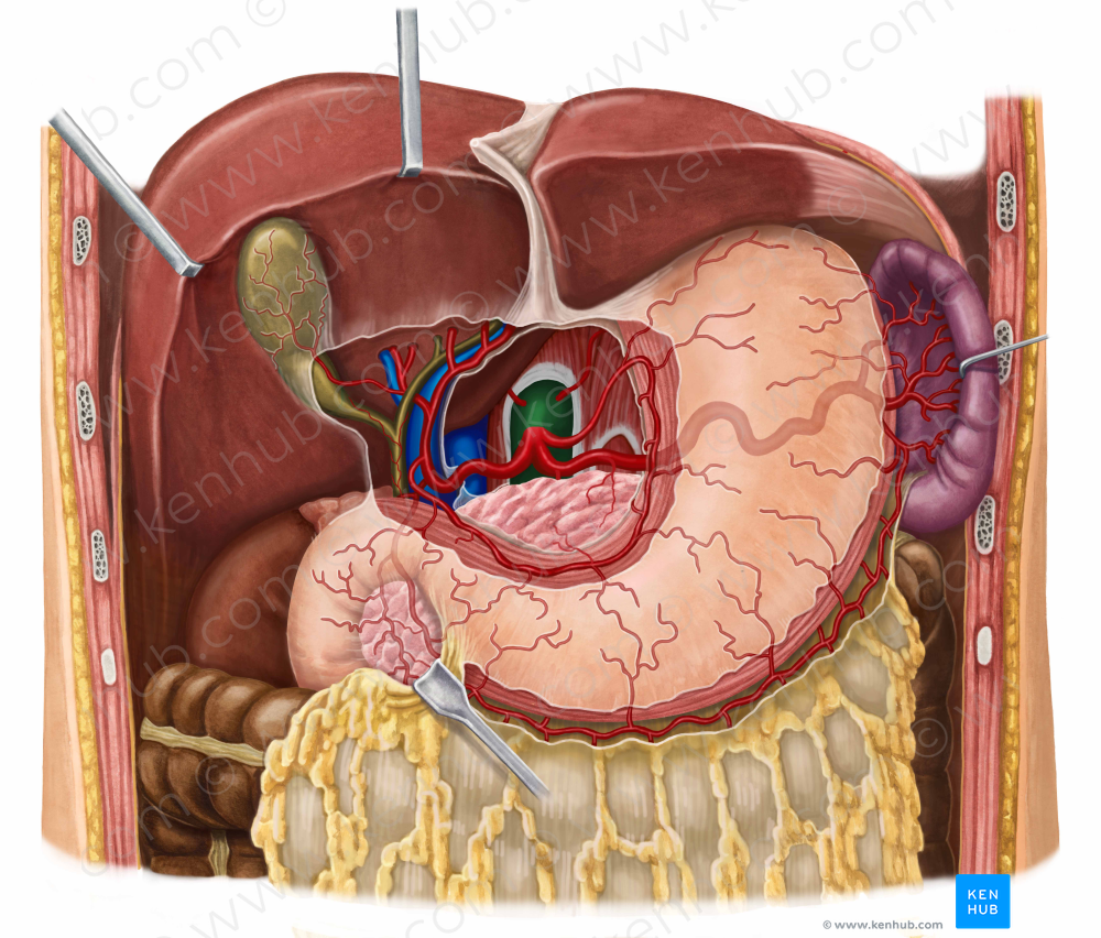 Shown from anterior perspective. Also known as Abdominal part of aorta.