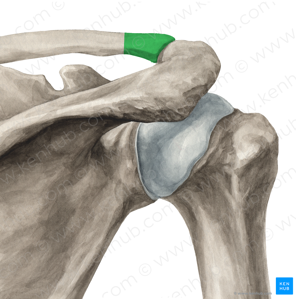 Shown from posterior perspective. Also known as Distal end of clavicle.