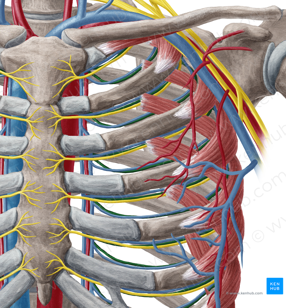 Shown from anterior perspective. Also known as Anterior intercostal branch of internal thoracic artery.