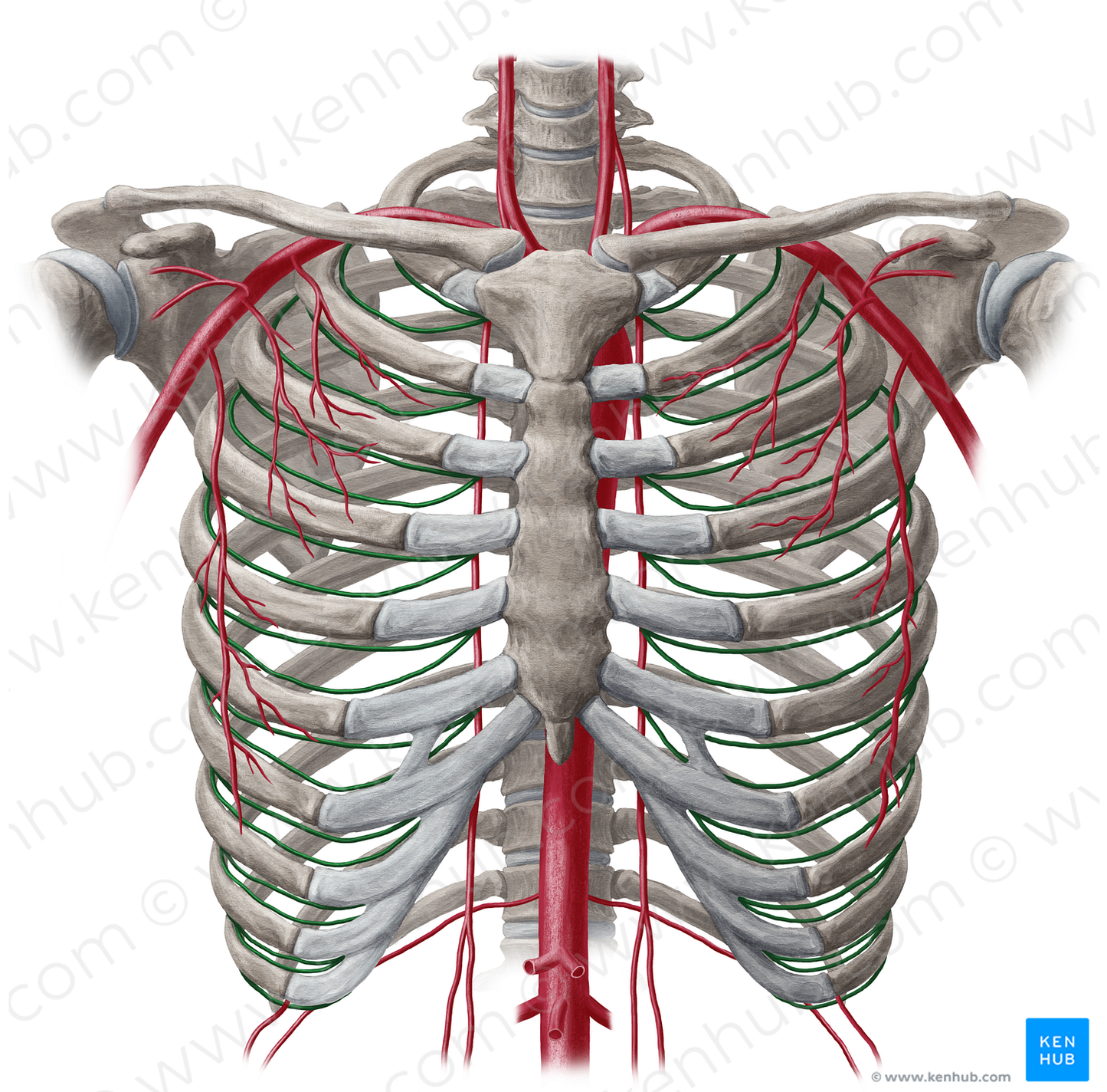 Shown from anterior perspective. Also known as Anterior intercostal branch of internal thoracic artery.