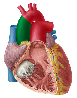 Shown from anterior perspective. Also known as Ascending part of aorta.
