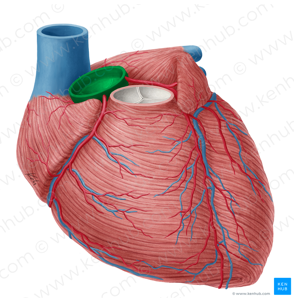 Shown from anterior perspective. Also known as Ascending part of aorta.