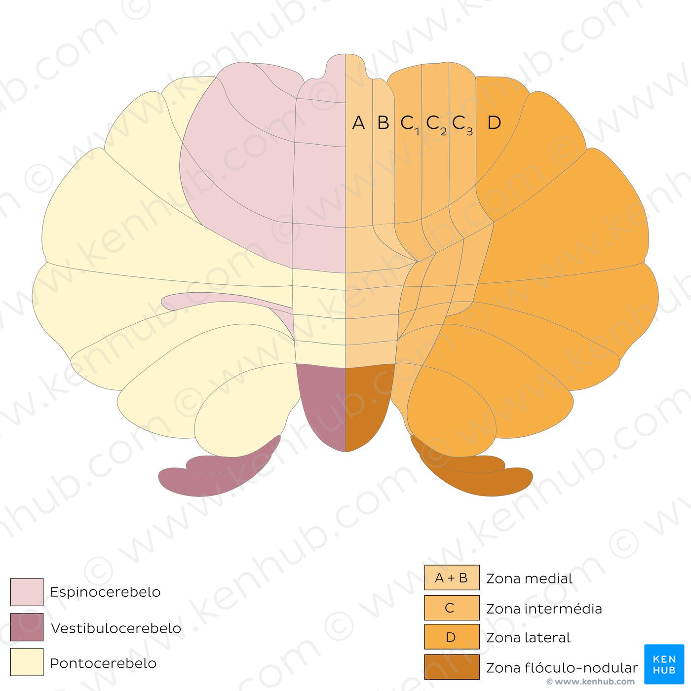 Cerebellum - divisions and zones (schematic) (Portuguese)