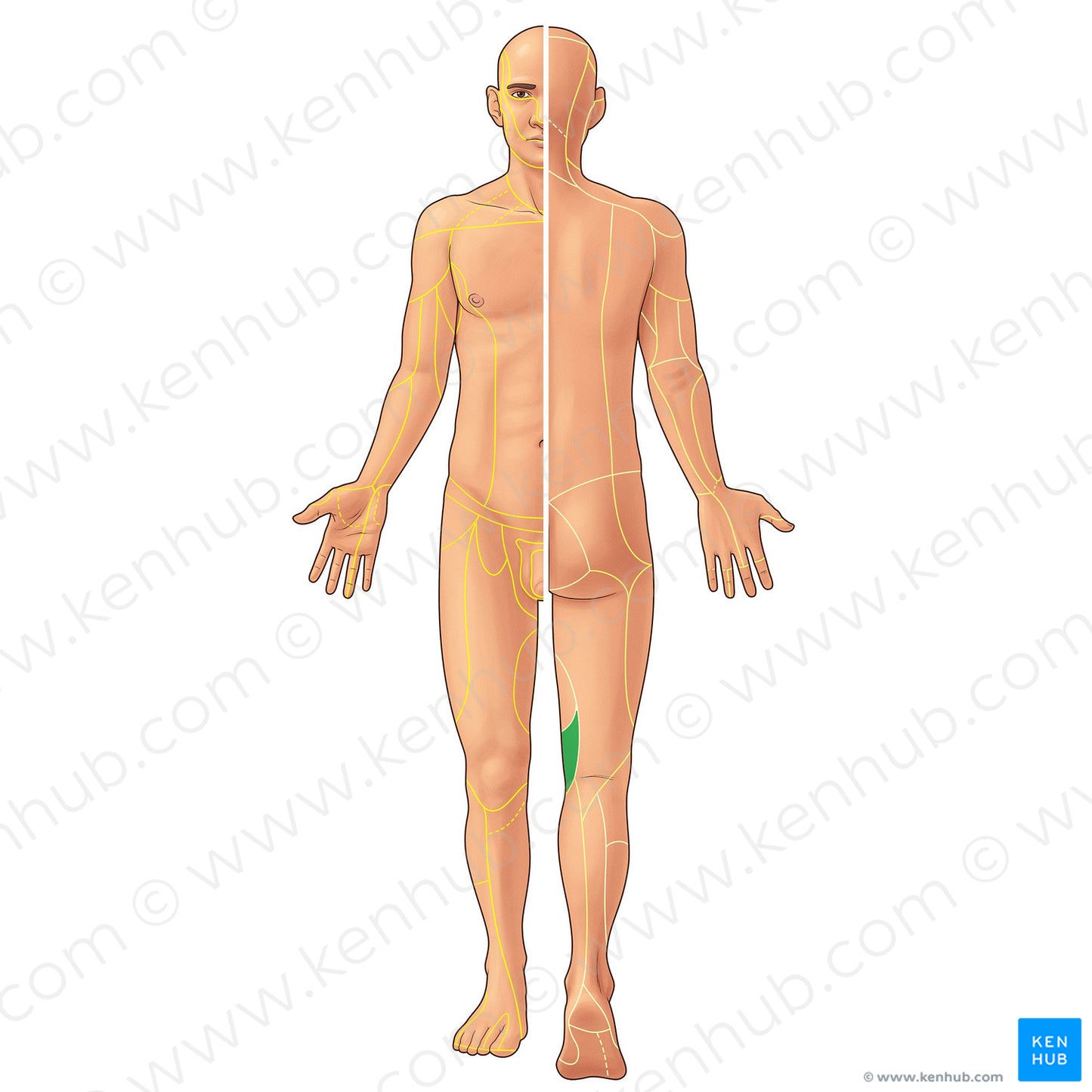 Shown from anterior perspective. Also known as Medial femoral cutaneous nerve, and Medial cutaneous nerve of thigh.