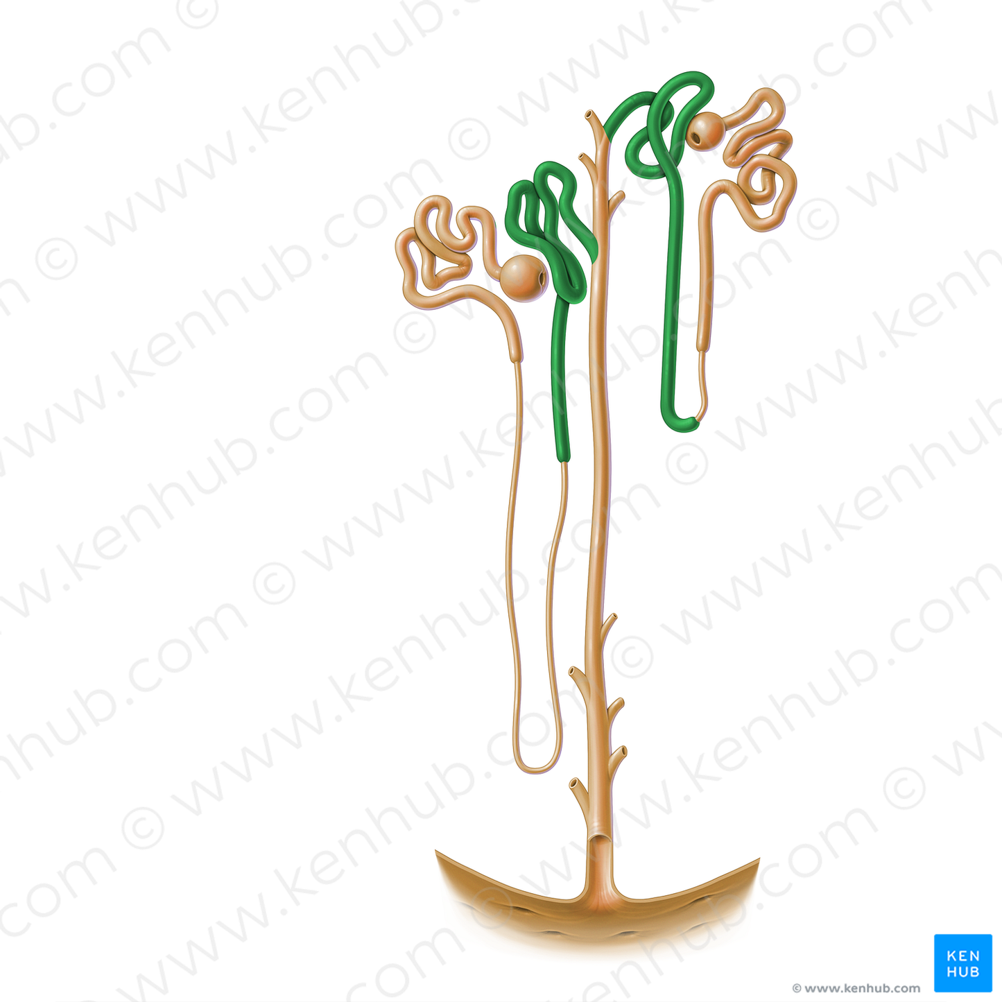 Shown from coronal perspective. Also known as Distal tubule of nephron, and Distal tubule of renal tubule.