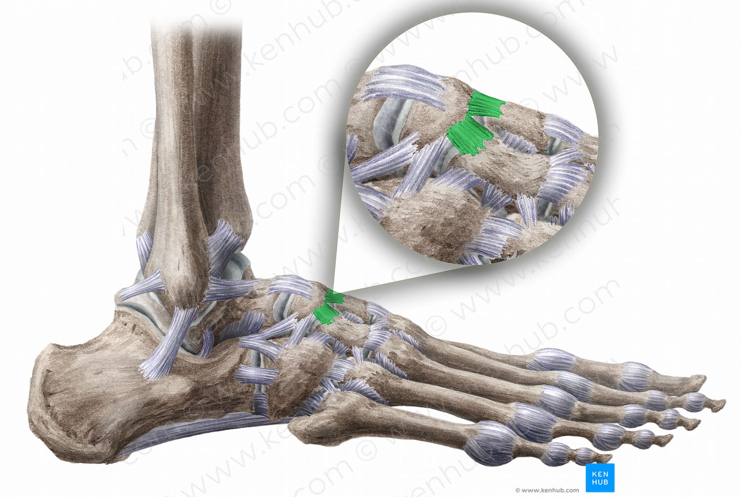 Shown from lateral right perspective. Also known as Dorsal naviculocuneiform ligaments.