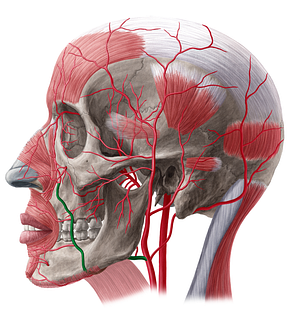 Shown from lateral left perspective. Also known as External maxillary artery.