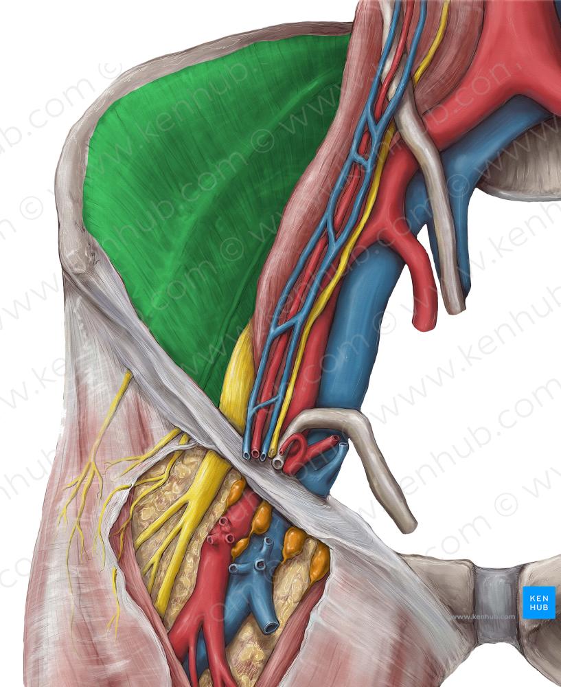 Shown from anterior perspective. Also known as Iliac part of iliopsoas fascia, and Abernethy's fascia.