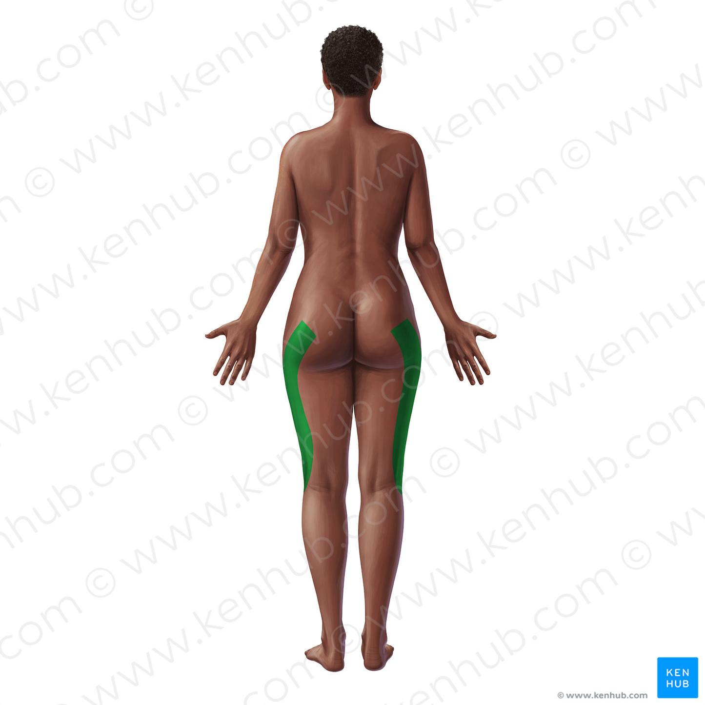 Shown from posterior perspective. Also known as Iliotibial band, and Bandelette of Maissiat.