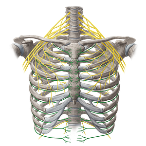 Shown from anterior perspective. Also known as Anterior ramus of thoracic spinal nerve, and Ventral ramus of thoracic spinal nerve.