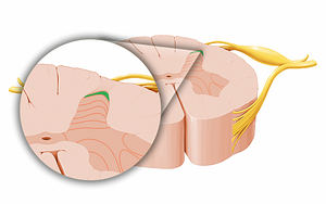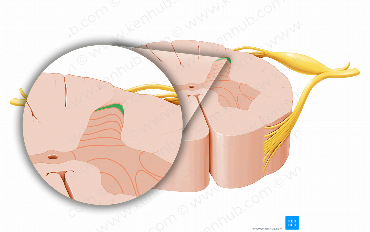 Shown from axial perspective. Also known as Marginal nucleus of spinal cord.