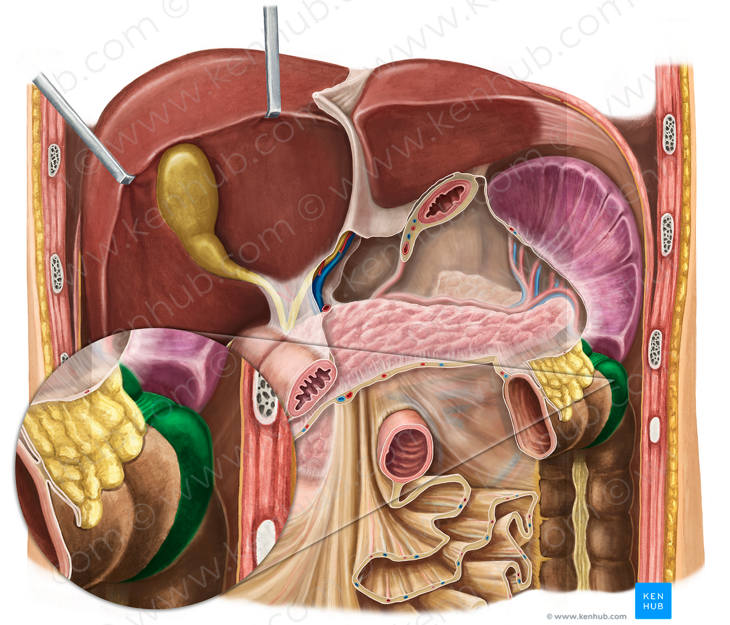 Shown from anterior perspective. Also known as Splenic flexure, and Lienal flexure.
