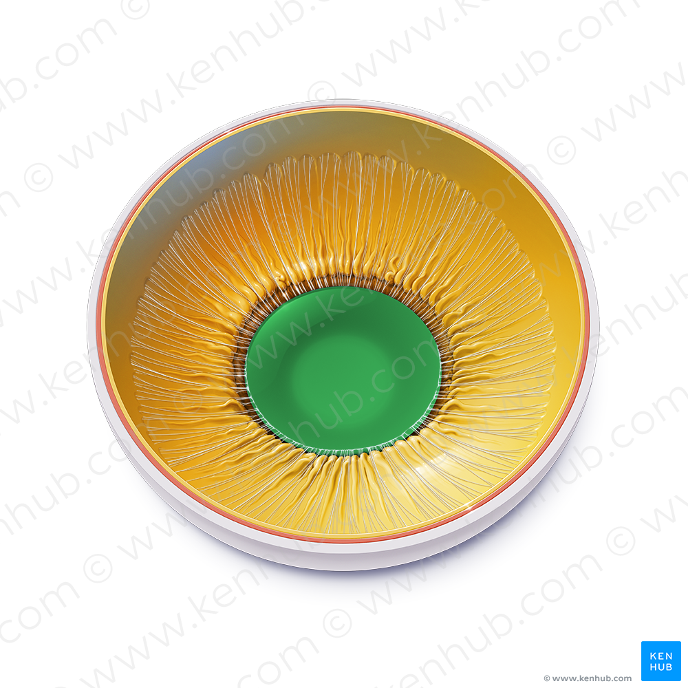 Shown from perspective. Also known as Crystalline lens.