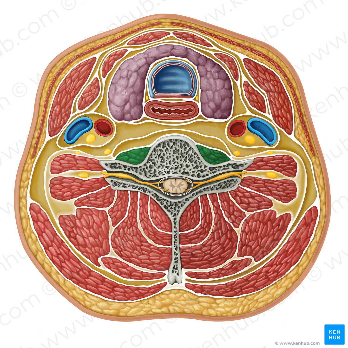 Shown from axial perspective. Also known as Longus cervicis muscle.