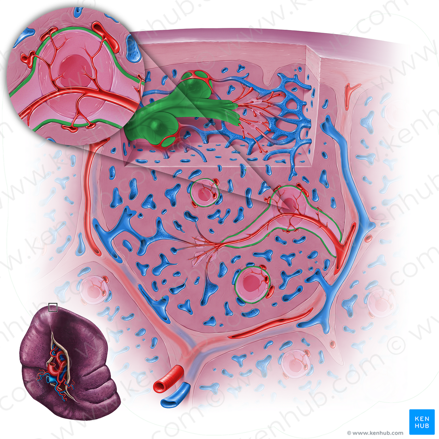 Shown from sagittal perspective. Also known as Marginal zone, Marginal zone of splenic nodule, Marginal zone, Marginal area, Marginal area of white pulp, Marginal zone of the spleen, and Marginal area of the spleen.