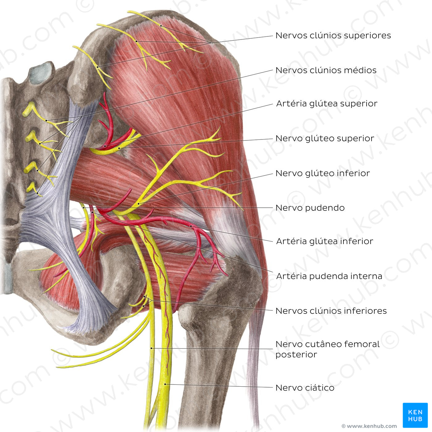 Neurovasculature of the hip and thigh (posterior view) (Portuguese)