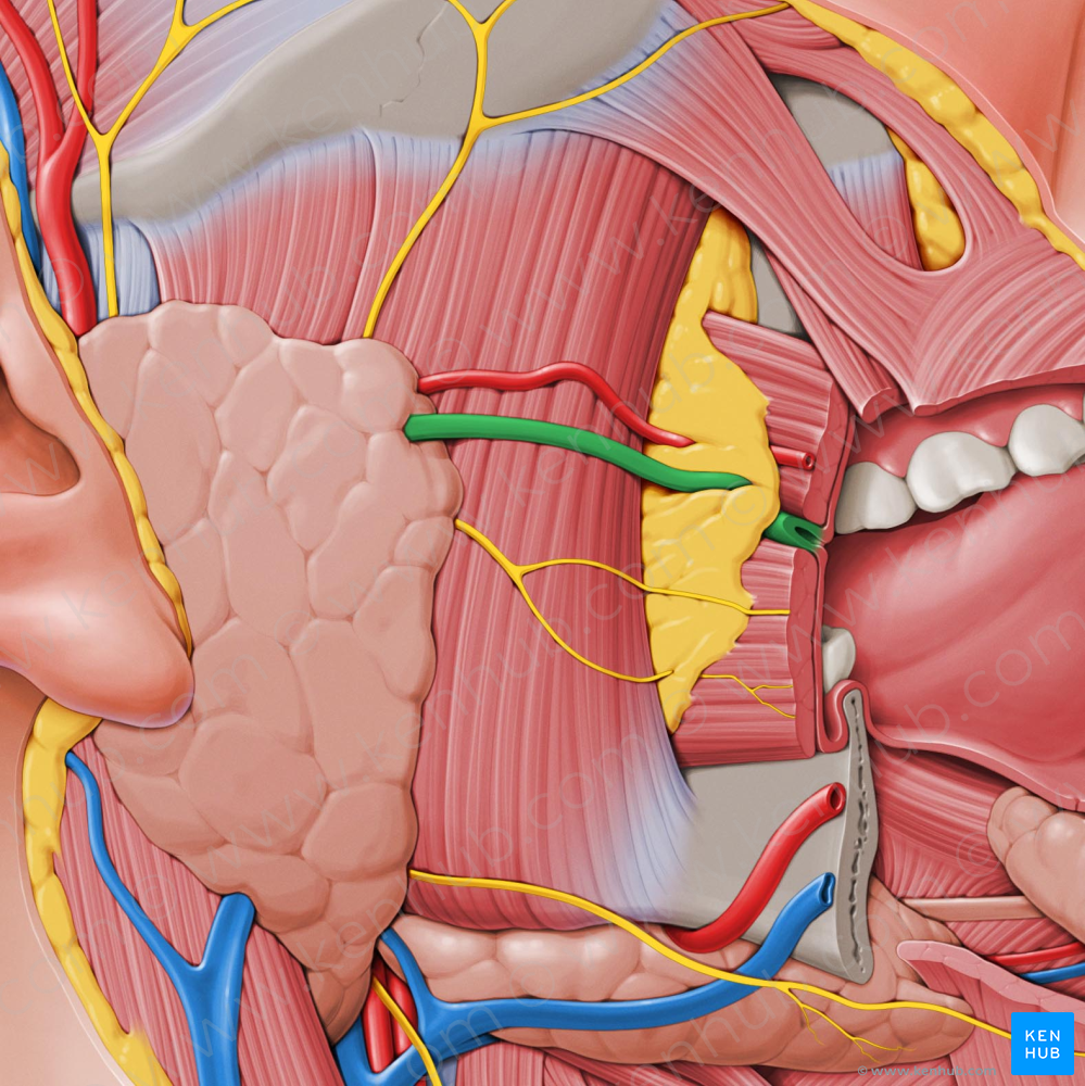 Shown from lateral right perspective. Also known as Stensen's duct.