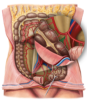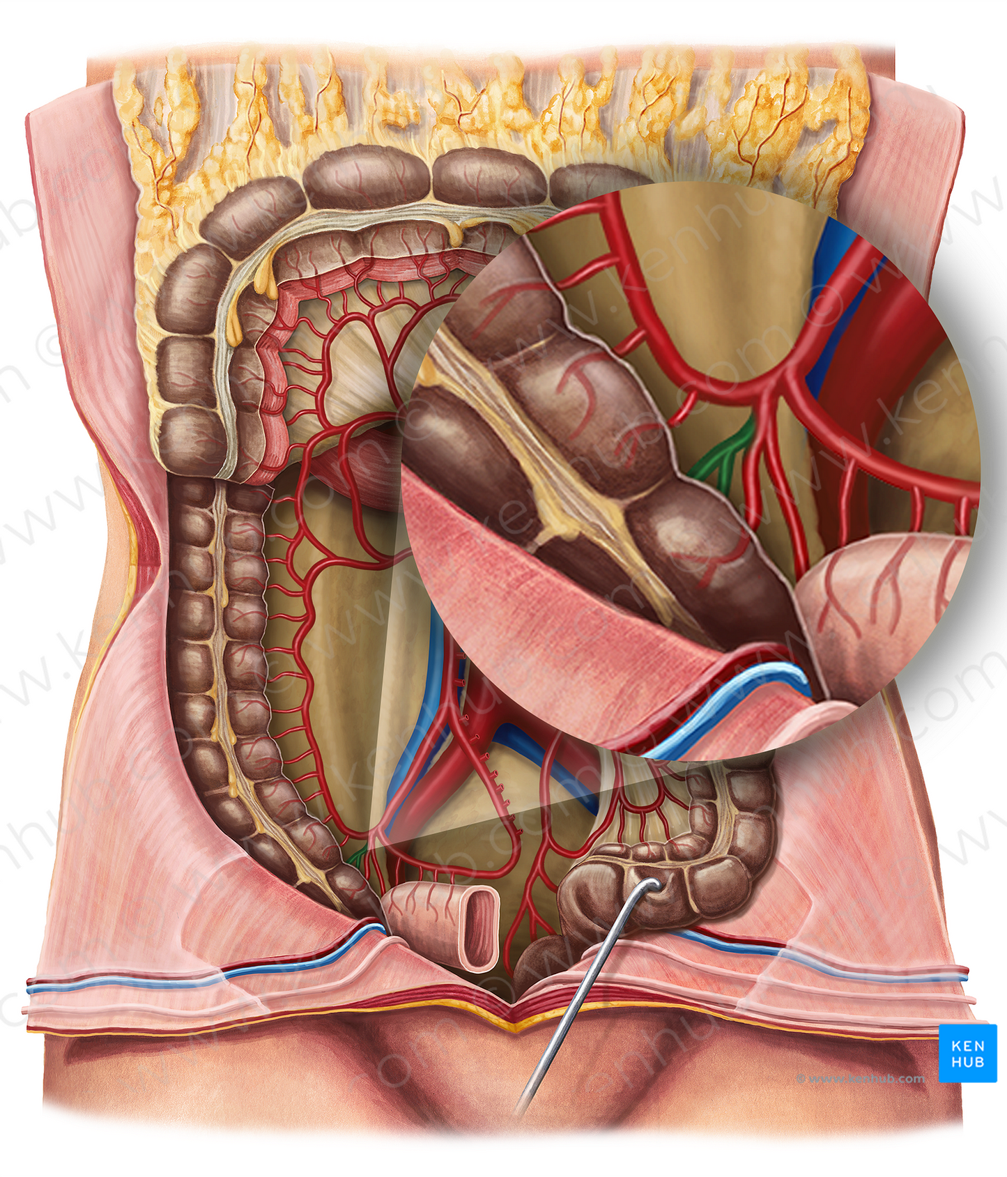Shown from anterior perspective. Also known as Posterior caecal artery.