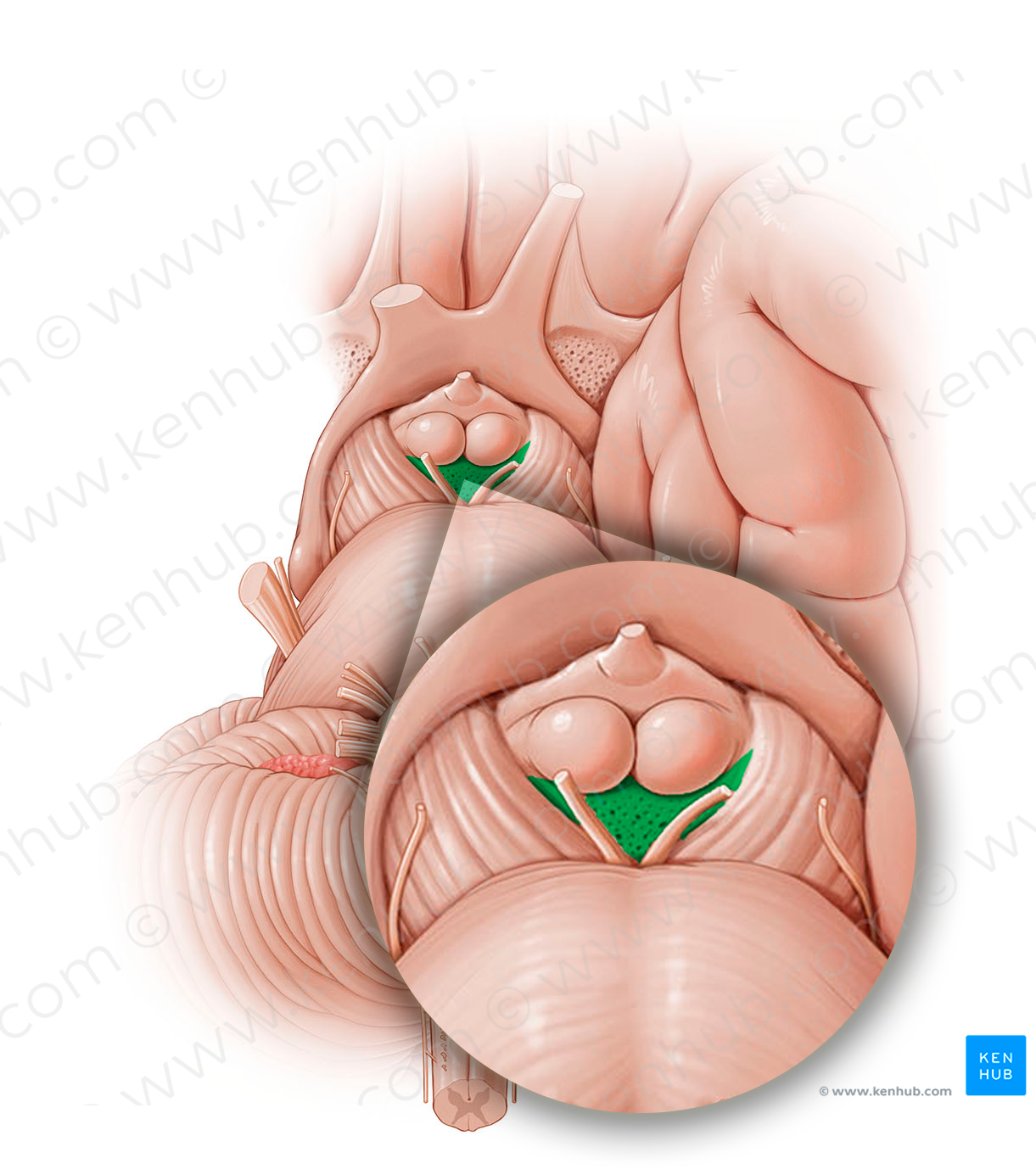 Shown from inferior perspective. Also known as Interpeduncular perforated substance.