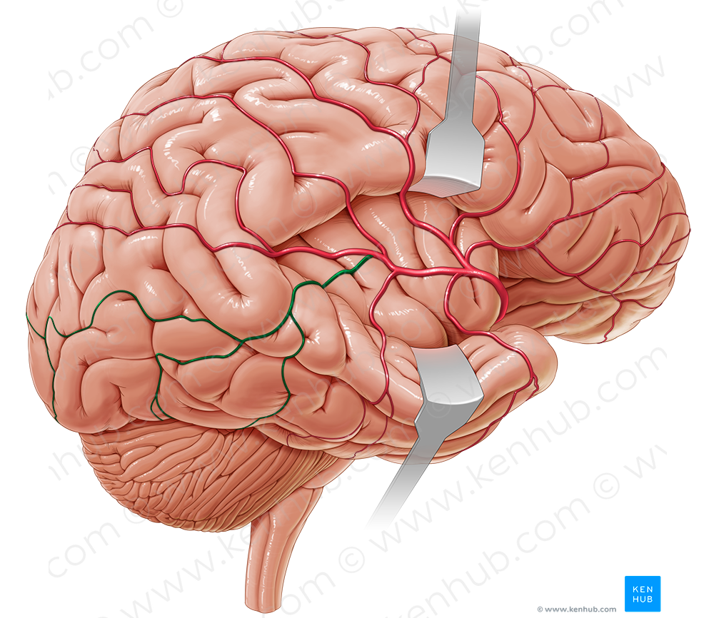 Shown from medial perspective. Also known as Posterior temporal branch of middle cerebral artery.