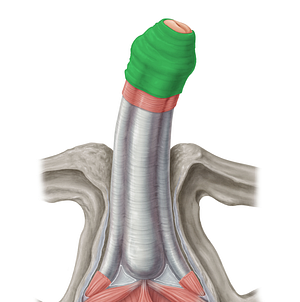 Shown from inferior perspective. Also known as Foreskin of penis.