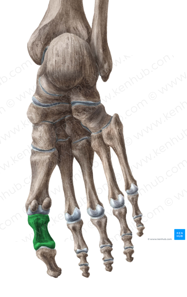 Shown from inferior perspective. Also known as Proximal phalanx of hallux.